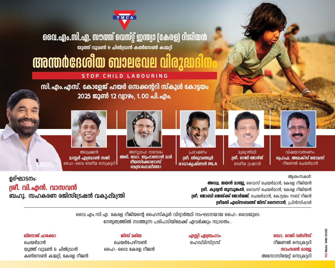 As part of the 70th Anniversary Celebrations of the YMCA South West India Region (Kerala), a special program is being organized to observe the International Day Against Child Labour under the theme Stop Child Labour